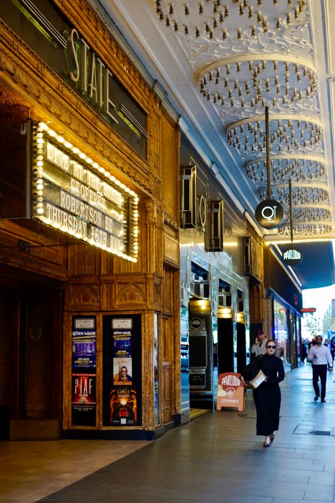 With stars in my eyes, I got ready for my first runway show of the week at the QT Hotel on Market St. This divine hotel can only be defined as boutique and boujee. I chose it because it was a dream of mine; for years, I had lived in Sydney, and I had always wanted to stay at the QT. The hotel’s entrance (you’d miss it if you blinked) is beside the State Theatre, where shows are every night, and gold flashing lights decorate its exterior. The QT hotel welcomed my stay with decadent pastries and indulgent macaroons made by world-famous patisserie chef Adriano Zumbo.