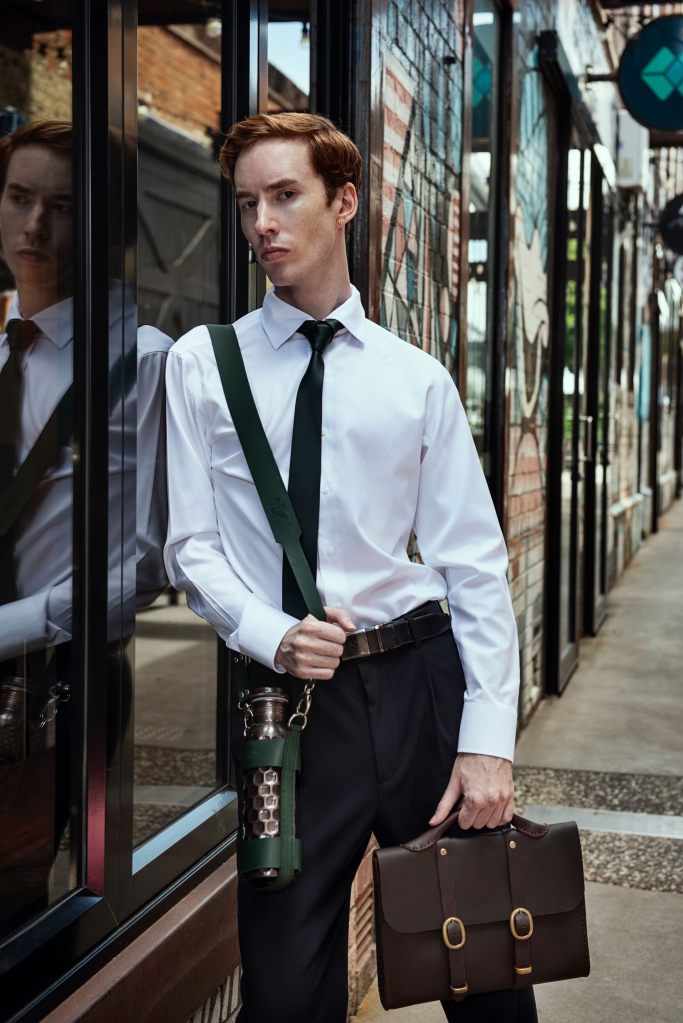 Jarrod Montoro wears Stirling & Truffles signature water bottle carrier for Style Magazines Toowoomba
