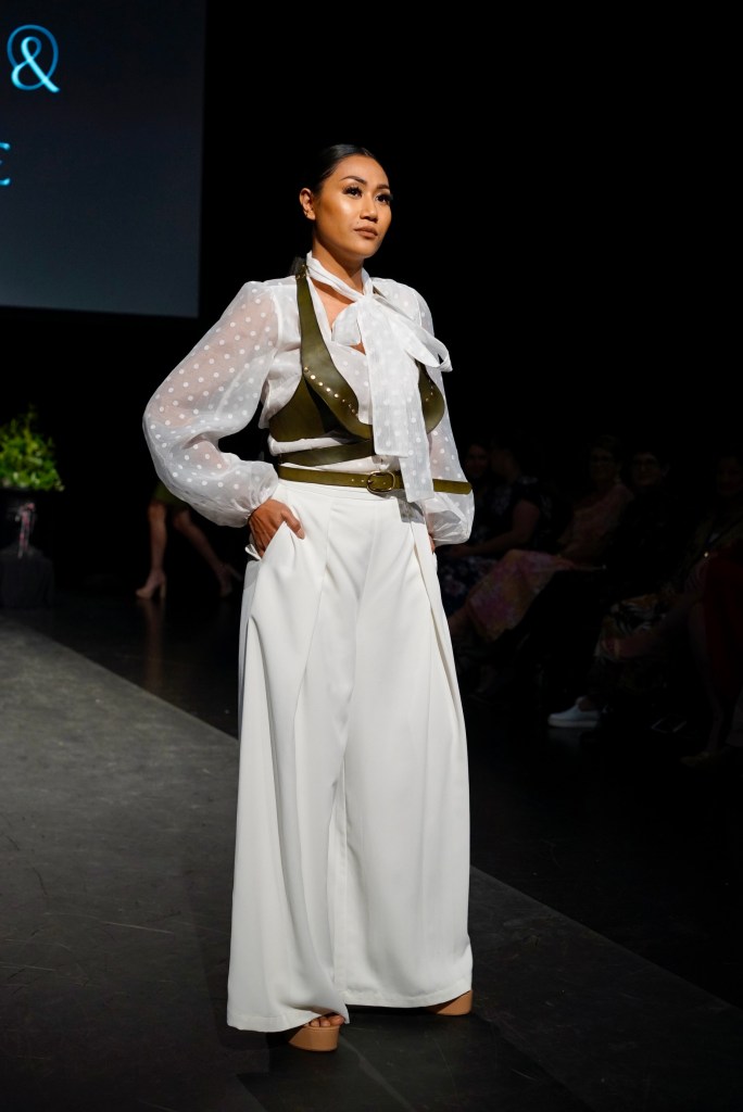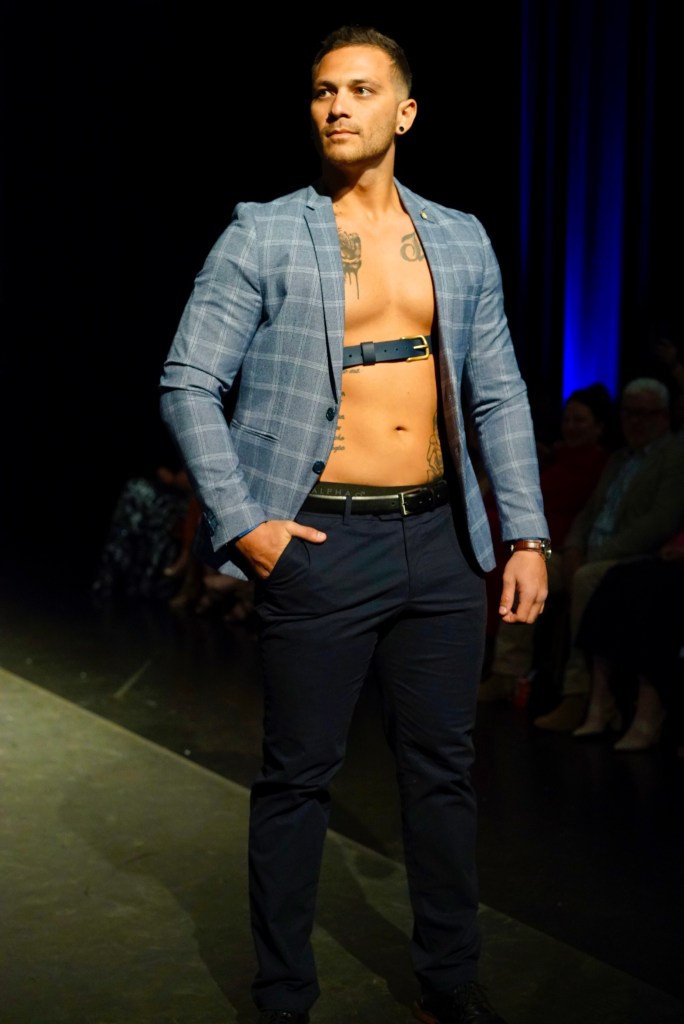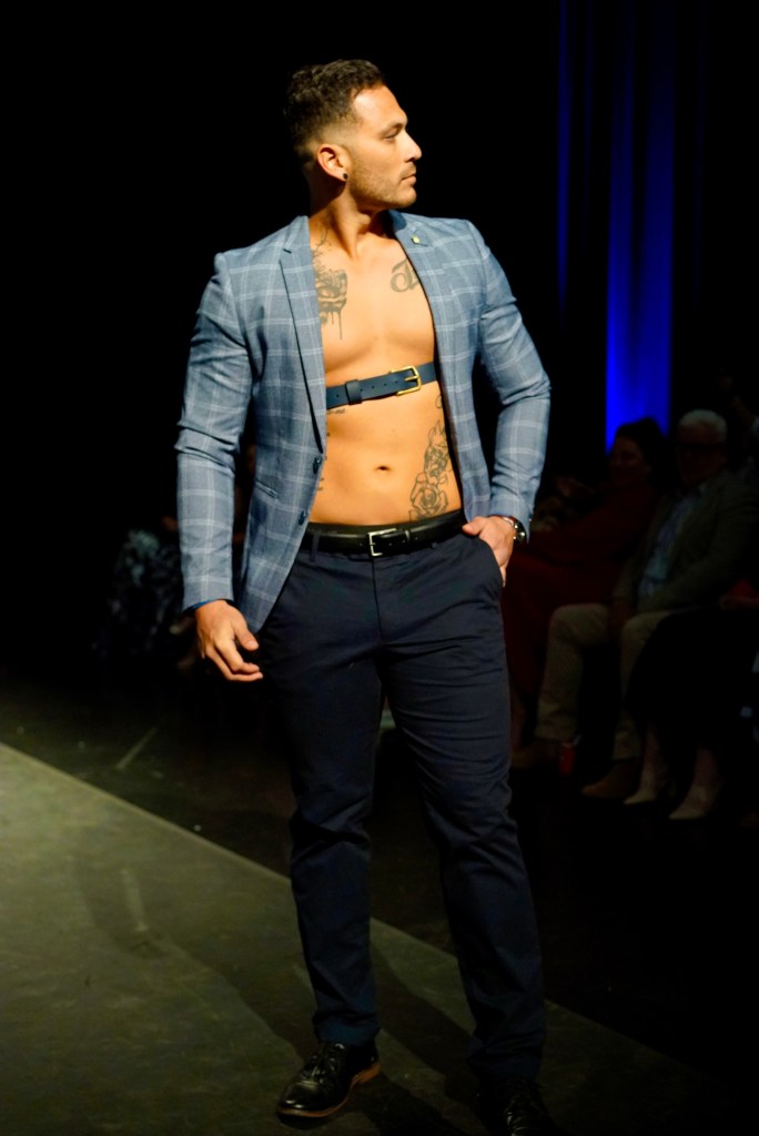 I had the opportunity to discuss the design process with Petria and Ben as they prepared for the Toowoomba Fashion Festival. In anticipation of the event, they posed critical questions to themselves: “What hasn’t Toowoomba seen yet? What hasn’t Australia seen?” Their response was to push the boundaries of fashion by crafting leather accessories with edginess and innovativeness. Their philosophy centres around creating custom designs and advocating for sustainability over fleeting fashion trends. While they acknowledged their runway looks weren’t for the everyday, this deliberate choice was aimed to make their presence on the catwalk all the more unforgettable.